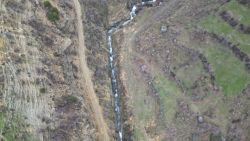 The canyon within the boundaries of the old settlement was filmed with a drone