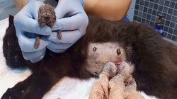 A Scottish Fold cat had difficulty giving birth due to a dead kitten with two heads